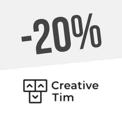 Derzeit gibt es Gutscheincodes und insgesamt 4 Angebote im Januar, verfügbar, um auf der Website von Creative Tim zu sparen. Melden Sie sich für Benachrichtigungen auf unserer Website an, um die neuen Angebote zu erhalten, sobald sie verfügbar sind. Dies ist der beste Weg, um keine Gelegenheit zu verpassen!