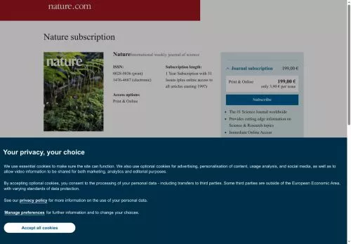 - Black Friday! Bis zu 55% Rabatt auf das Abonnement von Nature, Nature Research & Nature Review